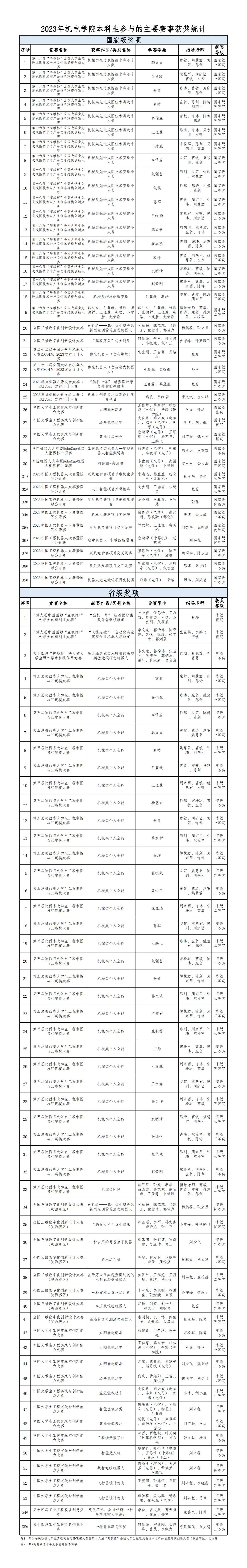 2023年机电学院本科生参与的主要赛事获奖统计