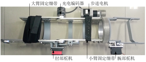 随着神经康复理论的发展,康复训练对于偏瘫运动功能障碍的治疗效果逐渐得到证实,给患者带来了希望。因此,本项目研发了一个基于人体工学的上肢外骨骼机器人。在此基础上,进行了相关控制系统研究,并研制了基于虚拟现实的恢复训练系统以及相关的评价方法。完成了多关节灵活化的上肢外骨骼康复机器人设计,并构建了SOLIDWORKS三维结构模型,搭建了上肢外骨骼机器人控制系统的试验平台,并采用“喝水动作”辅助测试。提出一种基于运动意图识别的上肢康复训练控制方法,并展开相关试验,结果符合预期,实现了人机协同控制。利用上述实验设备与西安交通大学第一附属医院合作开展了上肢外骨骼康复设备的研发,康复设备如图2所示。
