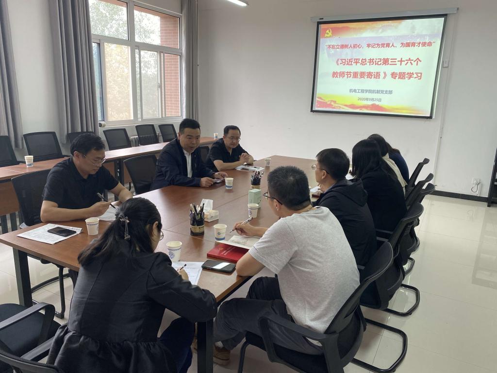 2020年9月25日下午,jdb电子中国官方网站机制党支部在临潼校区笃行楼315党团活动室召开组织生活会,专题学习习近平总书记教师节重要寄语。校党委副书记赵小峰作为该支部联系校领导参加会议。机制党支部书记管声启主持会议。