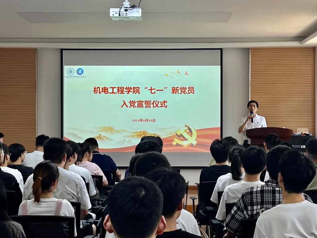6月30日下午,在庆祝建党102周年之际,jdb电子中国官方网站举行新党员“七一”入党宣誓仪式,学院党委书记阚佩、副书记冯翊、全体支部书记和2023年新发展党员以及老党员代表出席了仪式。仪式由辅导员李良主持。