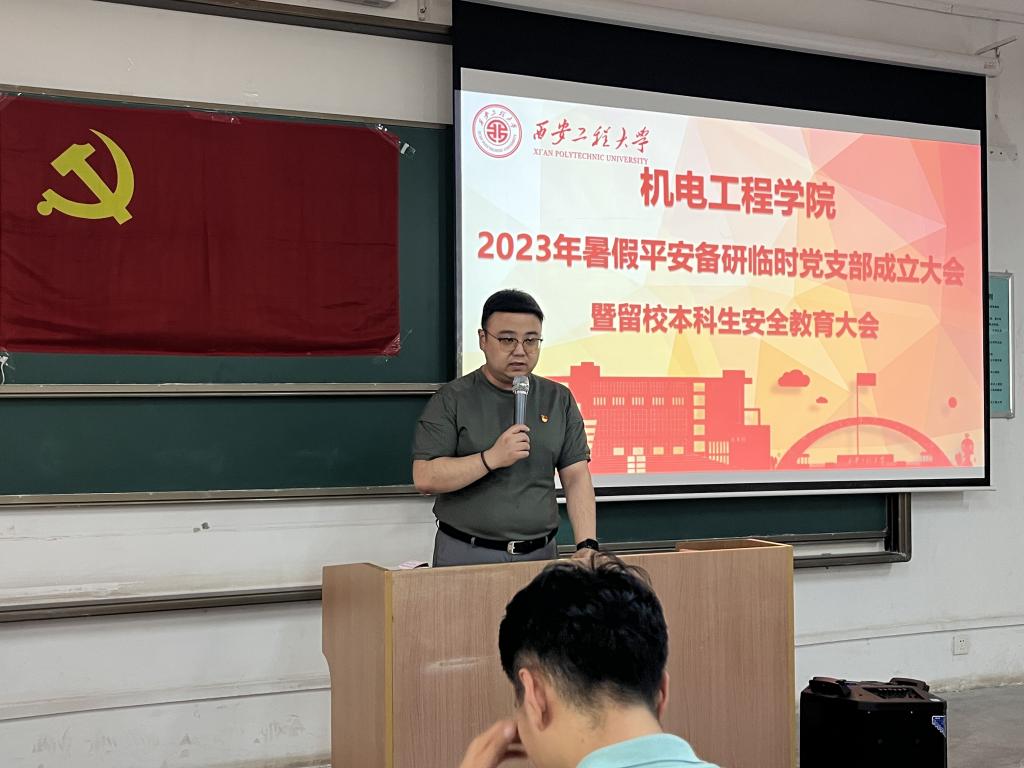 7月14日下午,jdb电子中国官方网站召开2023年暑假平安备研临时党支部成立大会暨留校本科生安全教育大会,院党委书记阚佩、党委副书记冯翊、辅导员刘鹏和留校学生参加了此次会议,会议由2020级辅导员李菁菁主持。