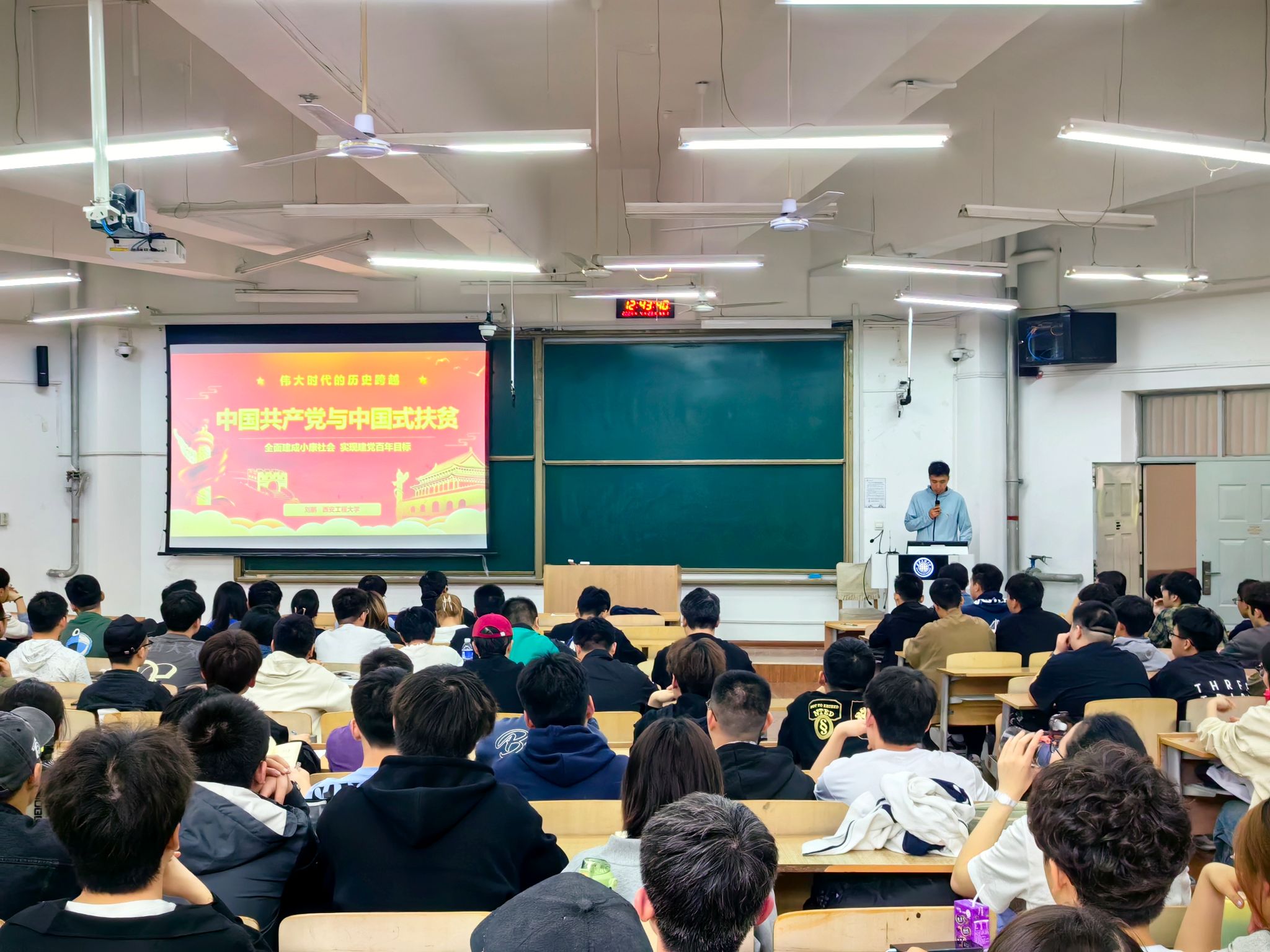 第二讲,由jdb电子中国官方网站机制学生第一党支部书记刘鹏做了题为《中国共产党与中国式扶贫》的专题党课。刘鹏老师通过大量的数据和图文视频资料,概述了我国的贫困状况,指出中国式扶贫的制胜法宝是习近平总书记提出的“精准扶贫”理念。刘鹏列举了“休闲旅游、新能源开发、电商带货、特色种养植”等因地制宜的扶贫创举,展现了中国式扶贫的卓越成效,号召全体同学要深刻领悟学习“上下同心、尽锐出战、精准务实、开拓创新、攻坚克难、不负人民”的脱贫攻坚精神。