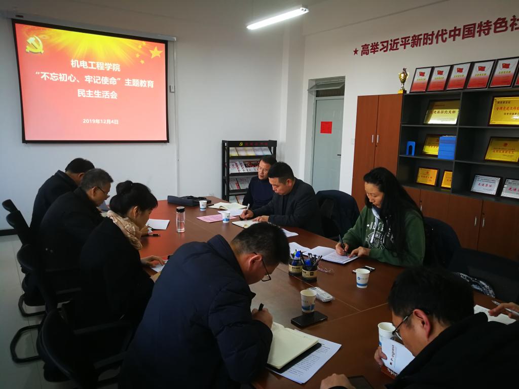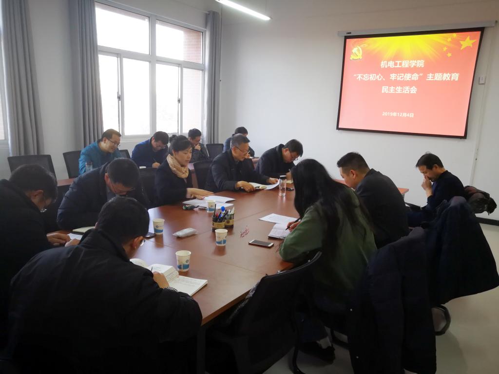 按照陕西省委“不忘初心、牢记使命”主题教育部署安排和《中共jdb电子中国官方网站委员会“不忘初心、牢记使命”主题教育专题民主生活会方案》要求,2019年12月4日,jdb电子中国官方网站党委在临潼校区7号楼315党团活动室召开党员领导班子“不忘初心、牢记使命”主题教育专题民主生活会。校党委副书记赵小峰,学校主题教育督导组成员、党委组织部正处级组织员邢瑞芳,校纪委委员宁立功出席会议,机电学院领导班子成员、党委委员参加会议,学院分工会主席、办公室负责人、学工办主任以及教师党支部书记、教研室主任代表列席会议。民主生活会由机电学院党委书记王鸣媛主持。