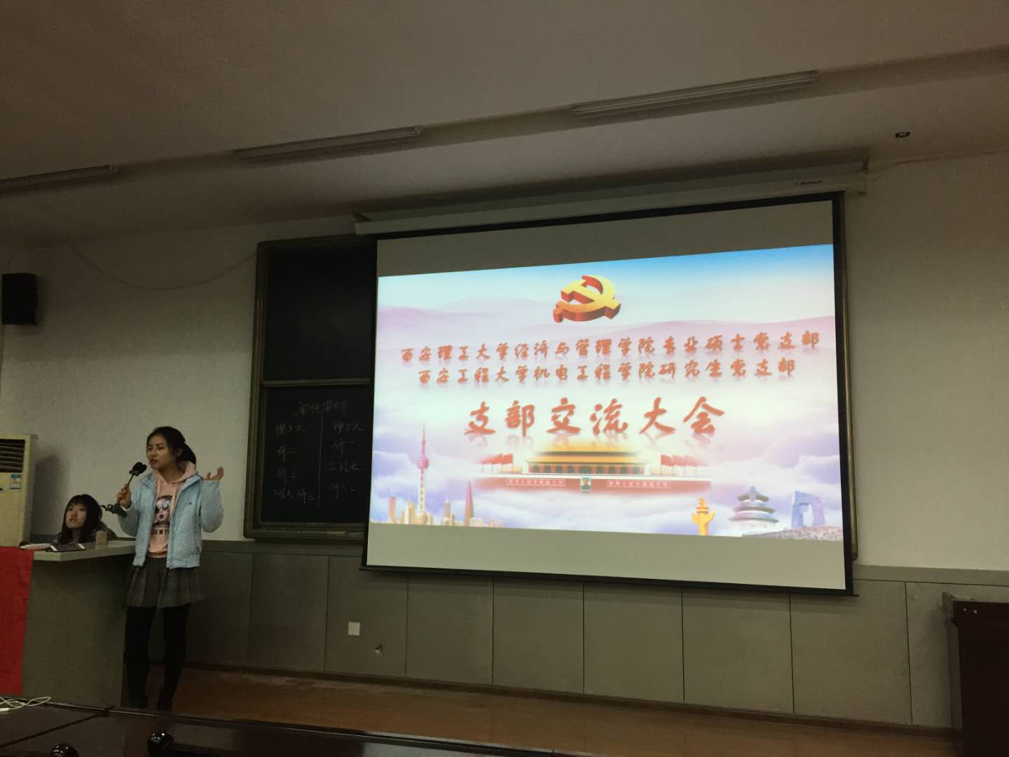 本次活动以党建工作汇报和党日活动交流为主要内容,是持续推进“两学一做”学习教育常态化制度化、创新学生党支部活动形式、提高活动实效性的一次有益尝试。交流会上,双方党支部代表就本支部党建工作特色、理论学习活动、支部党日活动、存在问题与发展思路等进行了沟通交流。机电学院研究生党员王盼做了题为“弘扬爱国奋斗精神,建功立业新时代——奋力书写研究生党员发展新篇章”的交流发言,引起与会同志的热烈讨论。随后,双方支部党员以辩论形式就社会热点问题“网络对大学生的实用性强还是娱乐性强”、“短视频的火爆是文化丰富还是文化匮乏的表现”等展开讨论,各抒己见,思想上得到了充分的交流与碰撞。