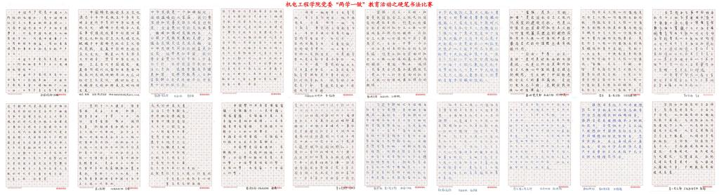 本次比赛是机电学院“党建+育人”系列活动之一,以深入推进“两学一做”学习教育常态化制度化为契机,旨在进一步加强学生党员的理想信念教育,牢固树立知党史、感党恩、跟党走的坚定信念,增强学生党员的荣誉感、责任感和使命感。党的十九大报告、《中国共产党章程》、社会主义核心价值观、《jdb电子中国官方网站学生手册》、《jdb电子中国官方网站校歌》等内容均在比赛抄写范围之内。本次活动共收到学生党员作品173篇,学院初选作品29篇,并邀请陕西省书法协会会员担任评审,最终评选出一等奖2篇、二等奖4篇、三等奖8篇、优秀奖15篇。