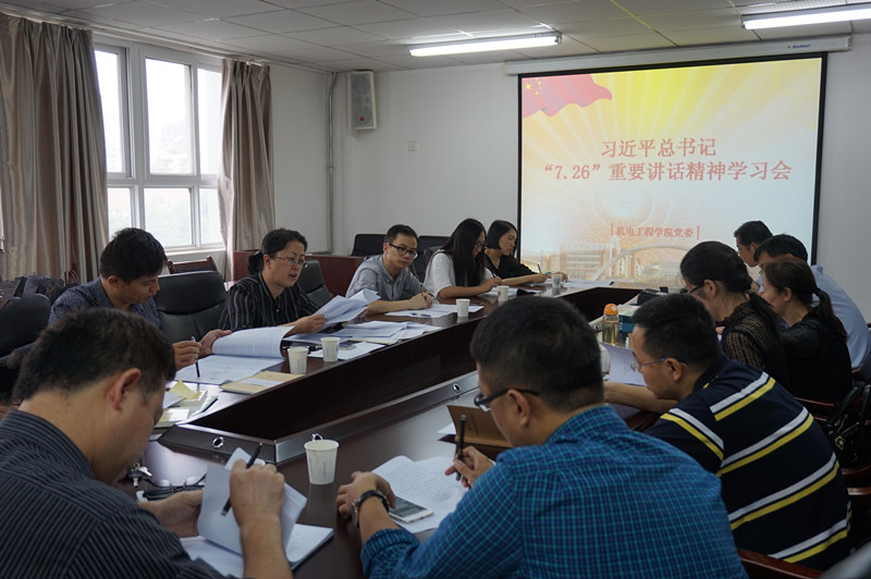 9月15日,根据校党委的部署,机电学院召开学习习近平总书记“7.26”重要讲话精神座谈会,学院党委书记杨永革、党委副书记魏哲、学院党委委员、全体党支部书记等参加了会议,会议由杨永革主持。