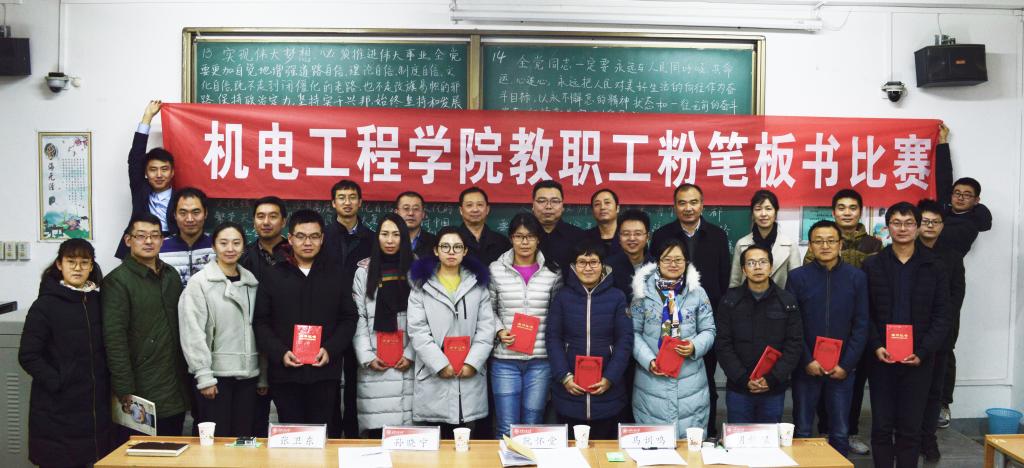 2018年12月7日中午,jdb电子中国官方网站首届教职工粉笔板书比赛决赛在临潼校区教学楼A-132举行,经各党支部初赛选拔进入决赛的16名选手参加了比赛。校党委副书记赵小峰亲临活动现场。