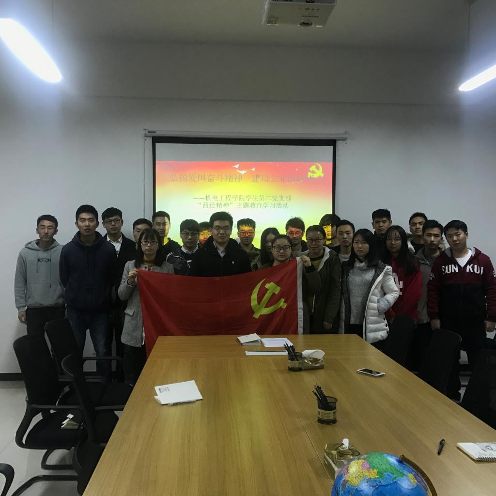 11月21日,jdb电子中国官方网站学生第二党支部在临潼校区7-310会议室举办了以“弘扬爱国奋斗精神,建功立业新时代”为主题的“西迁精神”学习教育活动。学生第二党支部书记黄超及支部全体党员参加了活动。