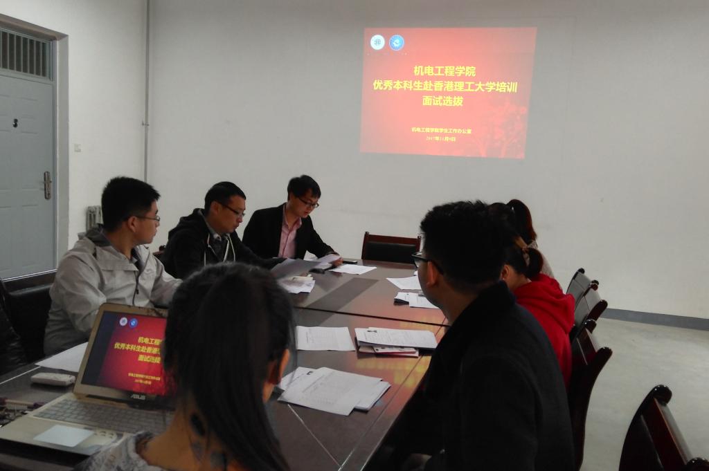 11月9日,机电学院举行选派jdb电子优秀本科生赴香港理工大学进行领导力及创新能力培训面试选拔会。机电学院党委副书记魏哲、工业设计教研室教师俞琳、辅导员杜静、秦方刚、黄超及学生代表和参加面试的10名2015级优秀学生参加了此次面试选拔会,会议由秦方刚主持。