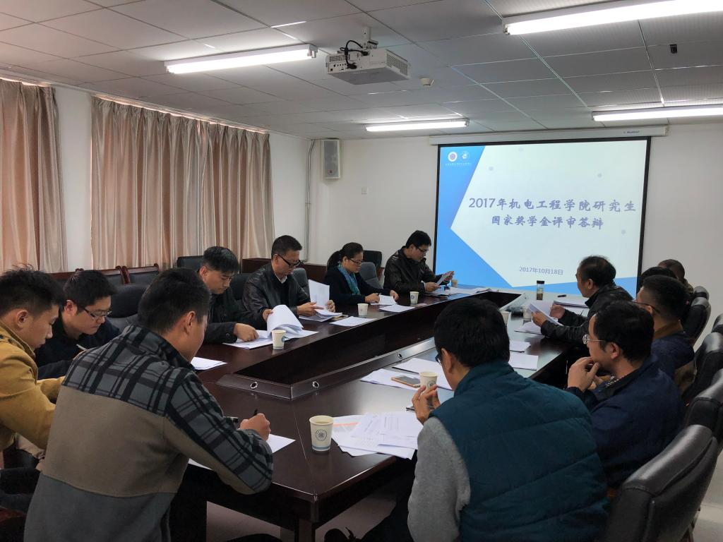 10月18日,机电学院举行2017年研究生国家奖学金评审会。机电学院院长胥光申、党总支副书记魏哲、院长助理苏晓磊、研究生秘书马林、各学科带头人、研究生班主任以及教师代表和学生代表参加了评审会,会议由苏晓磊主持。