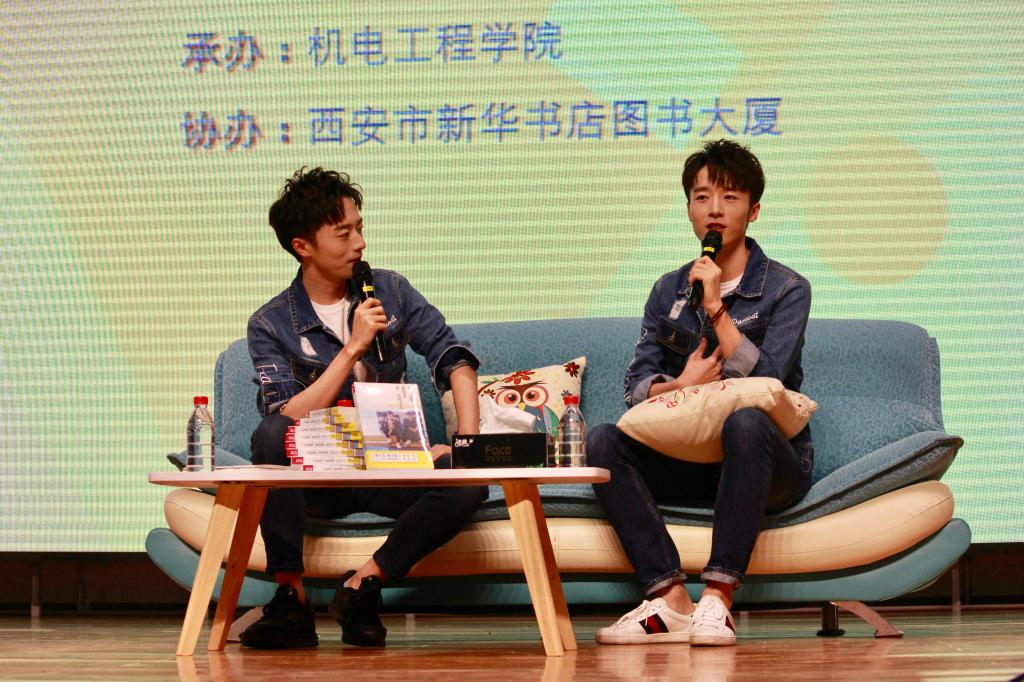 9月23日,由共青团jdb电子中国官方网站委员会、北京磨铁图书主办,机电学院承办,西安市新华书店图书大厦协办的以“燕园文豪话成长,书香校园品人生”为主题的第十届“书香工程大”系列活动之作家分享交流会在jdb电子中国官方网站临潼校区大学生活动中心隆重举行,本次“书香工程大”活动特邀了中国90后新锐青年作家,北大最帅双胞胎兄弟苑子文和苑子豪来到现场做了关于校园和成长的访谈。校团委书记王晓先、机电学院党委副书记魏哲及全体辅导员、1000余名同学以及校外慕名而来的百余名粉丝参加了活动,活动由机电学院团总支书记刘沫含主持。