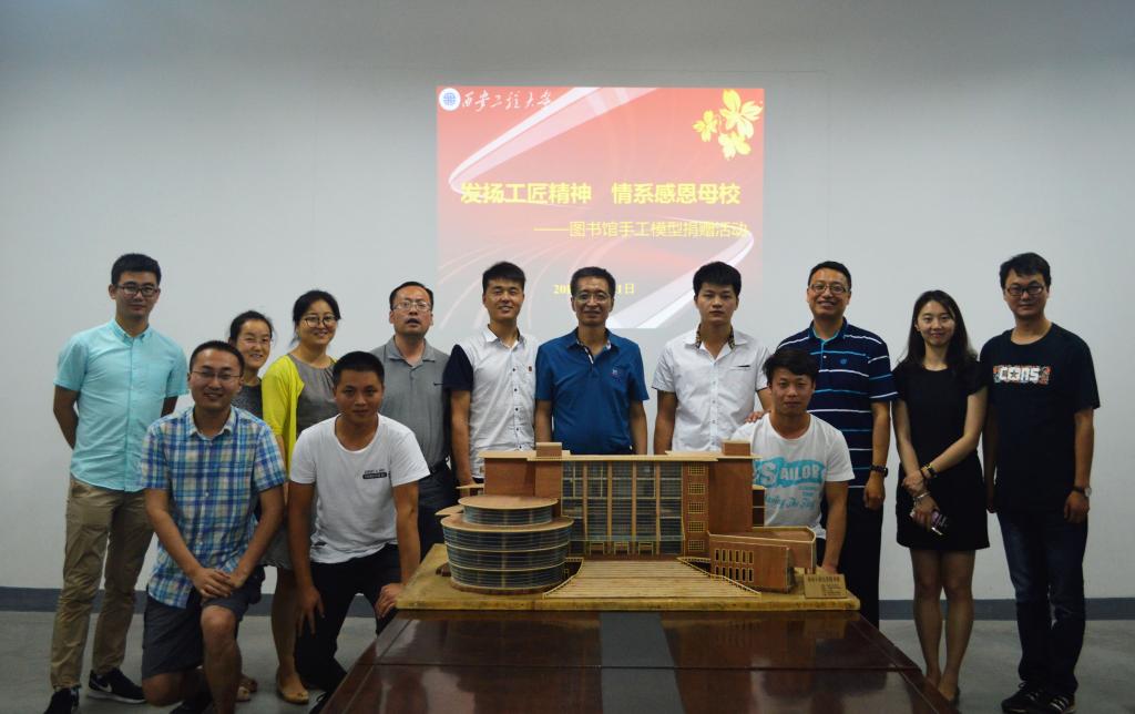 青春拂晓,行远思恩。6月21日晚20:00,机电学院2013级机械设计制造及其自动化02班本科毕业生刘超向母校捐赠图书馆手工模型。副校长樊増禄、学生工作部部长黄海峙、副部长张慧、机电学院党委副书记魏哲、全体辅导员以及20余名学生代表参加了捐赠活动,活动由黄海峙主持。