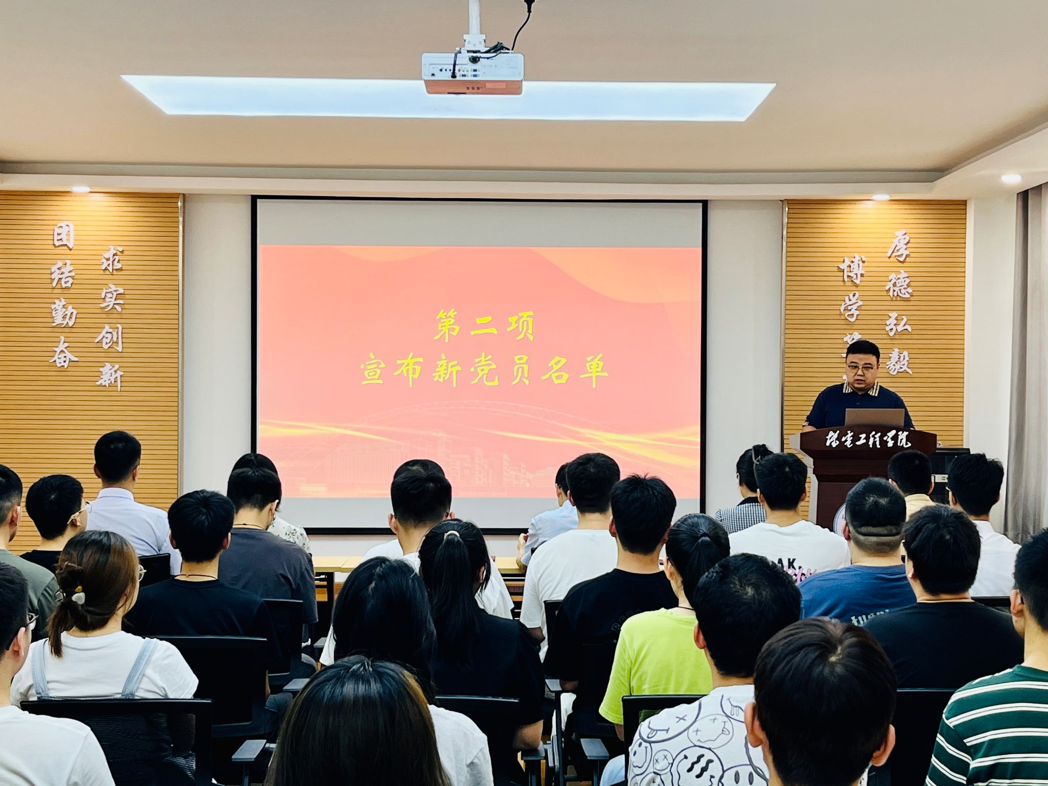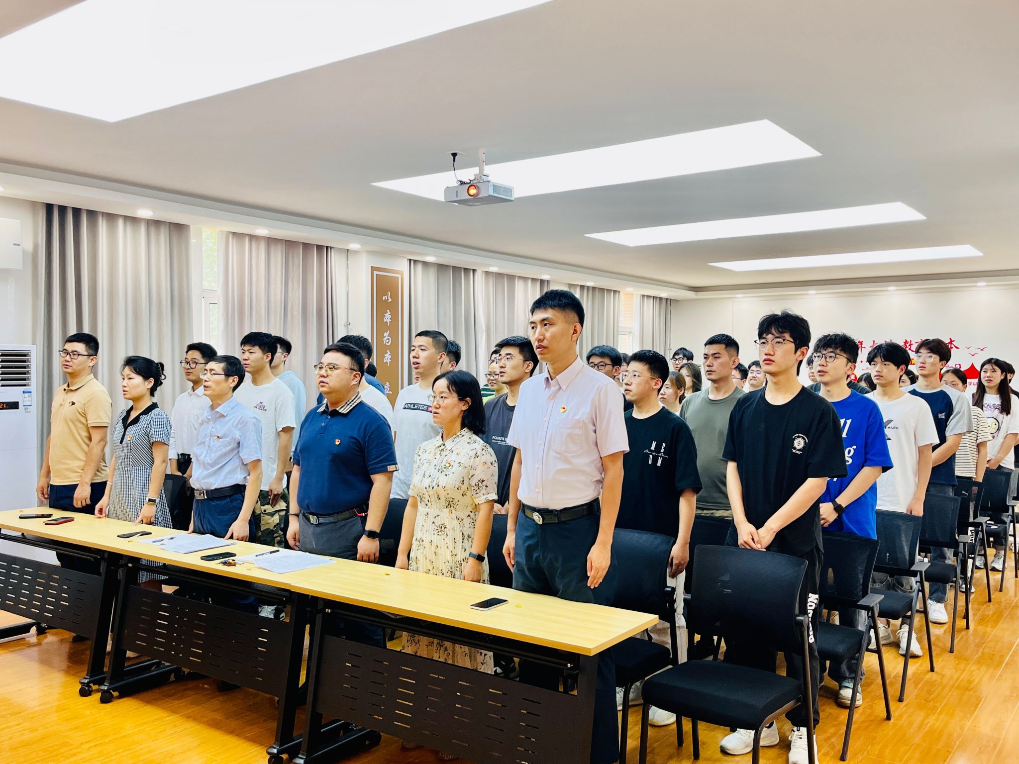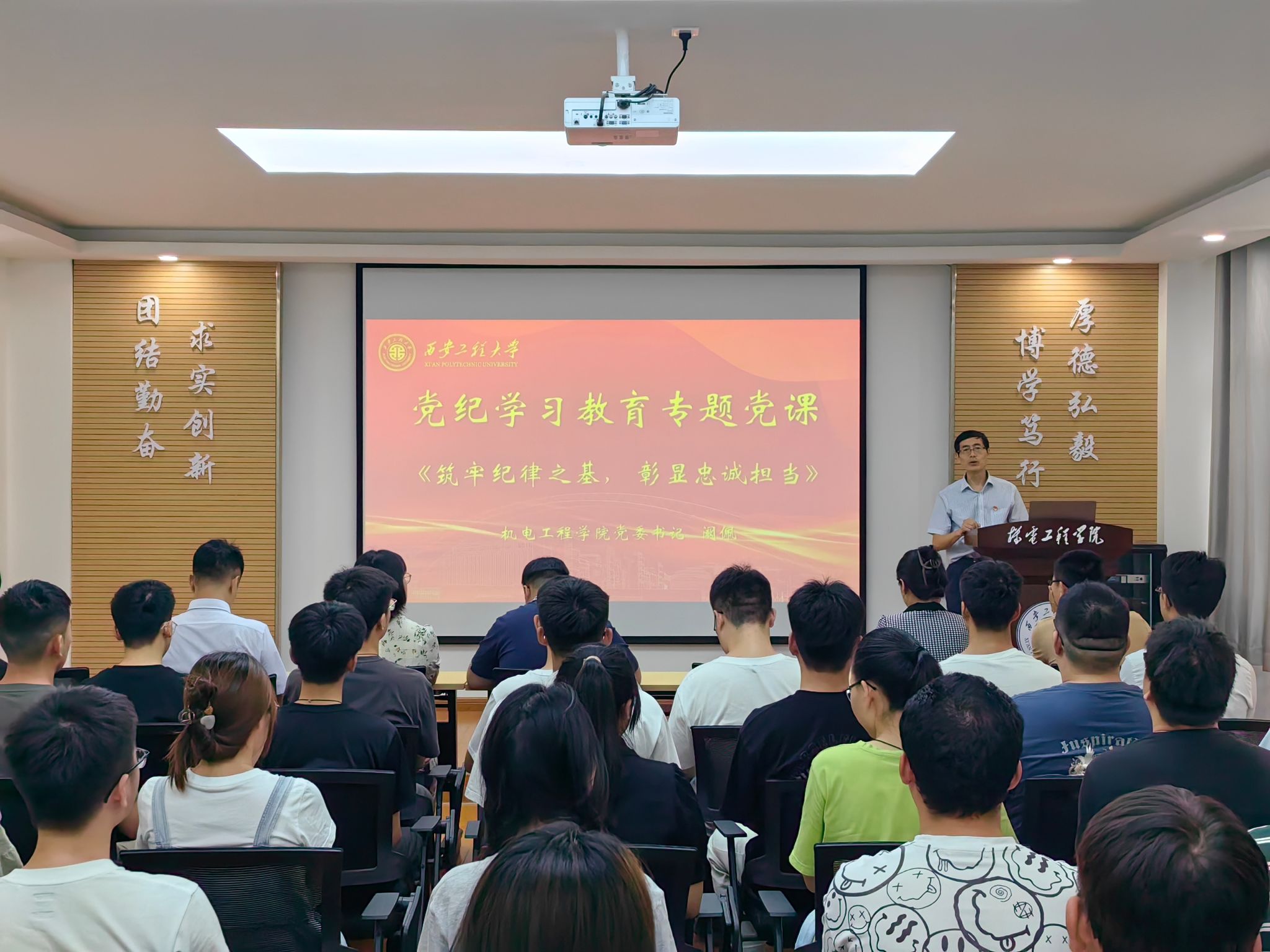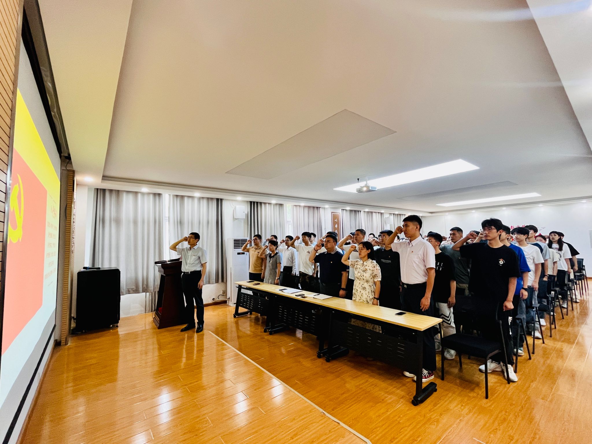 在中国共产党成立103周年之际,为更好地教育引导新党员坚定理想信念,牢记初心使命,2024年7月1日,jdb电子中国官方网站在临潼校区机电楼307会议室举办2024年新党员入党宣誓仪式暨党纪学习教育专题党课,学院党委书记阚佩、党委副书记冯翊、各学生党支部书记及66期全体预备党员参加了仪式,仪式由学院兼职组织员秦方刚主持。