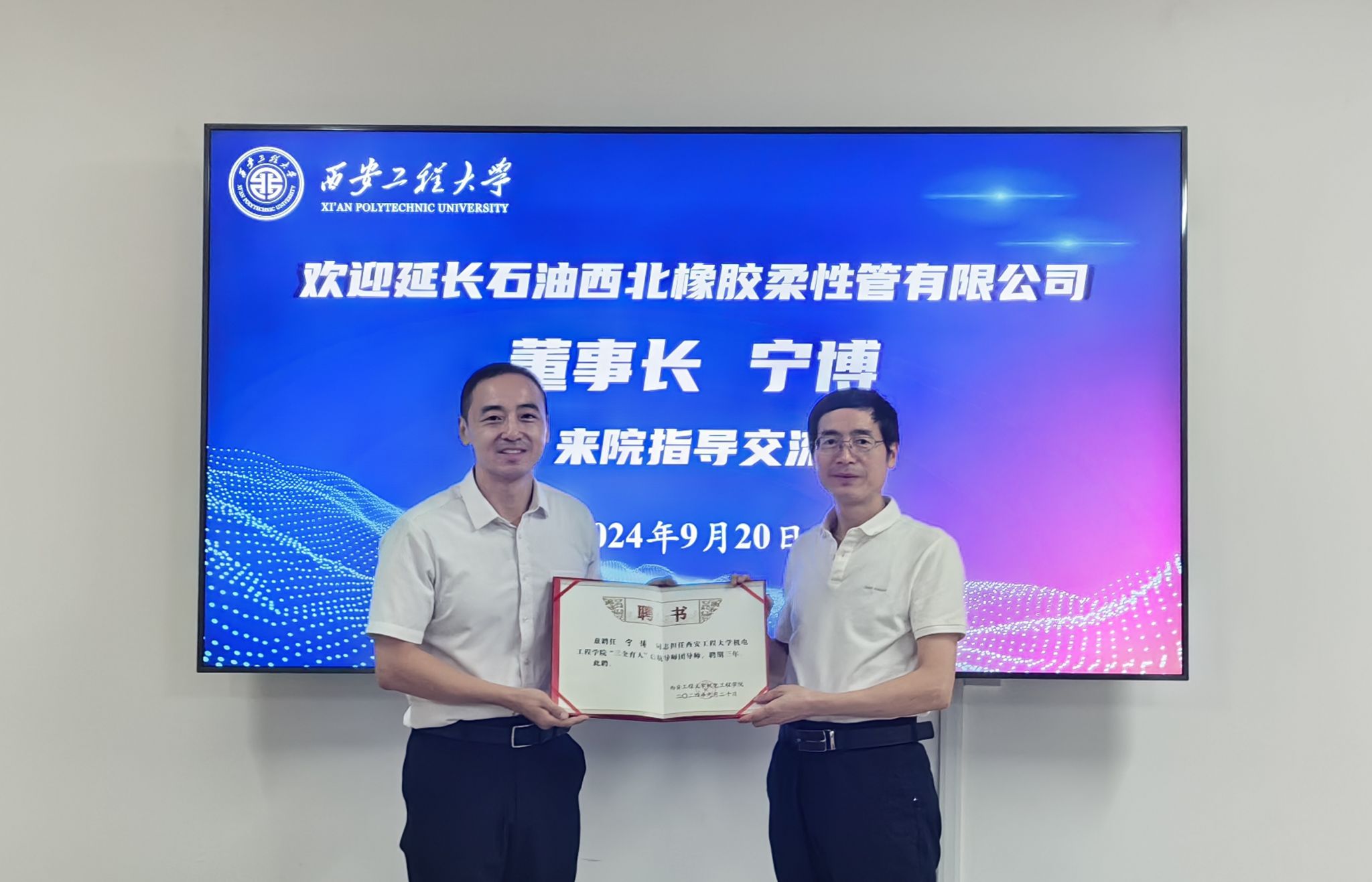 受聘仪式上,阚佩对宁博表现出的社会责任和教育情怀表示衷心感谢,对其担任研究生校外指导教师和启航导师团导师表示热别欢迎;赵小惠介绍了学院的历史发展、学科特色、师资队伍、科学研究、人才培养和就业发展等情况;宁博介绍了公司性质、主营业务、发展状况、主要产品、市场定位等情况。双方就后续校企合作进行深入洽谈,尤其在科技创新和产业创新深度融合、企业实习和实践培训育人等深度合作方面达成初步意向。赵小惠向宁博颁发了机械专业学位硕士研究生校外指导教师聘书,阚佩向宁博颁发了jdb电子中国官方网站“三全育人”启航导师团导师聘书,此次受聘仪式标志着学院与陕西延长石油西北橡胶柔性管有限公司的校企合作正式启航。