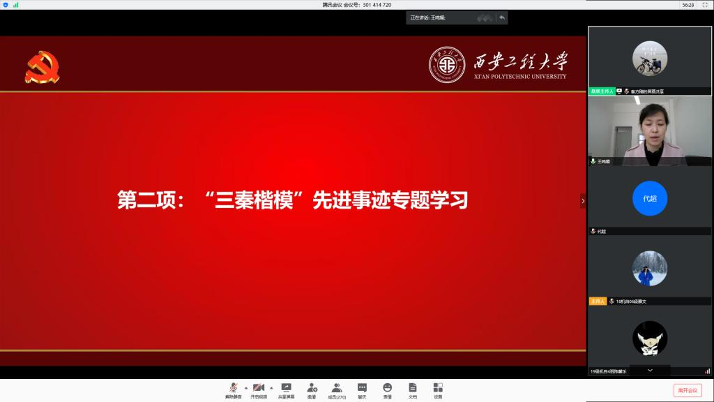 王鸣媛带领大家共同学习了“三秦楷模”施秉银、付凡平同志和赵梦桃小组的先进事迹,号召全体同学认真学习他们坚守初心使命、永远奋斗的优秀品格,学习他们舍身忘我、矢志奉献的崇高境界,学习他们恪尽职守、埋头苦干的朴实作风,学习他们勇于担当、冲锋在前的拼搏精神,在关键时刻站得出来、危急关头顶得上去的担当作为。她通报了学院教师党员在疫情防控过程中的履职尽责情况、师生党员自愿为抗击疫情捐款情况和学生志愿者积极投入到疫情防控第一线的志愿活动开展情况,要求培训班全体学员在今后的学习和生活中,更加严格要求自己,加强自身修养,发挥先锋模范作用;脚踏实地,不断锤炼个人作风,端正入党动机,争取从思想上和行动上早日入党。