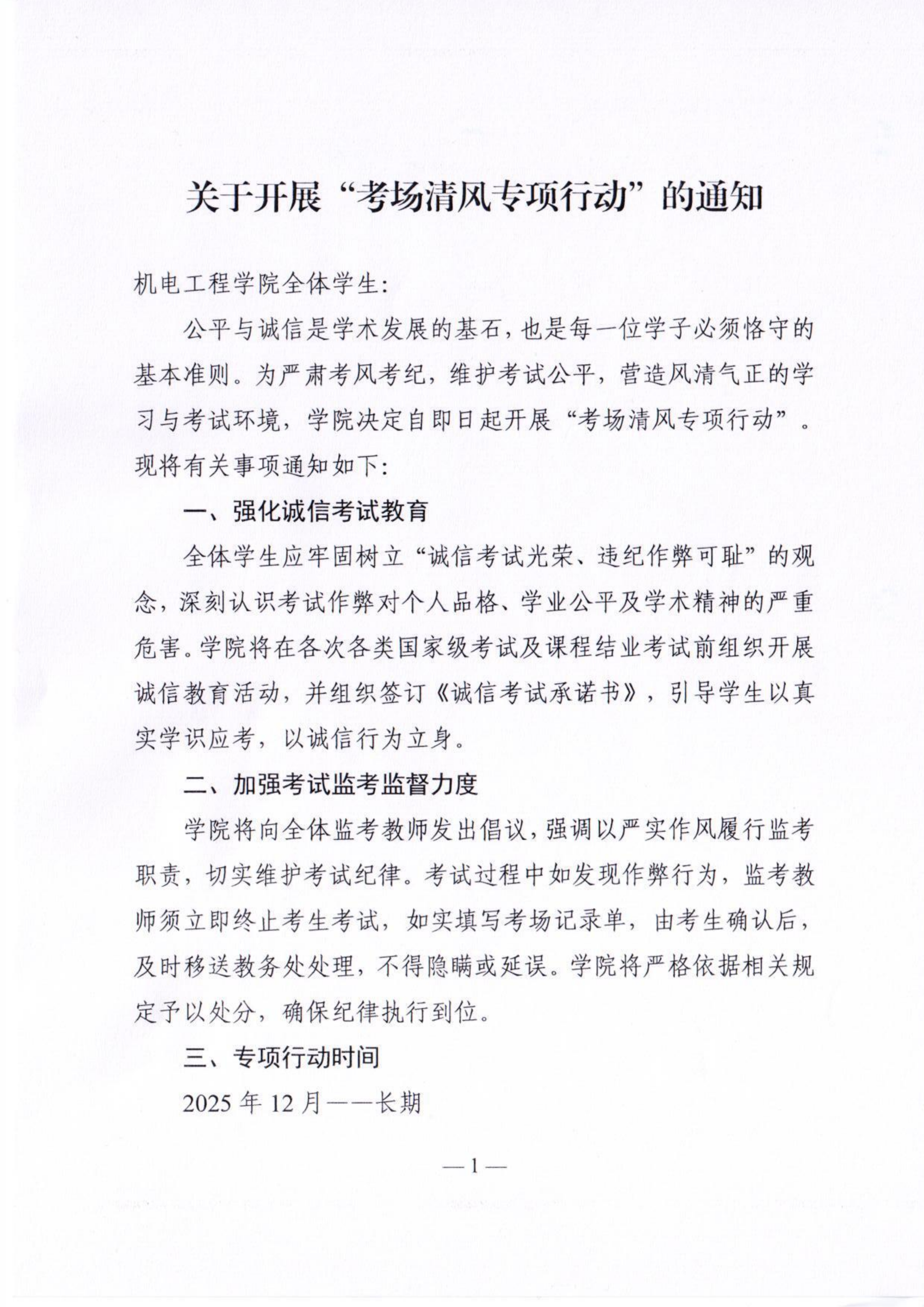 关于开展“考场清风专项行动”的通知