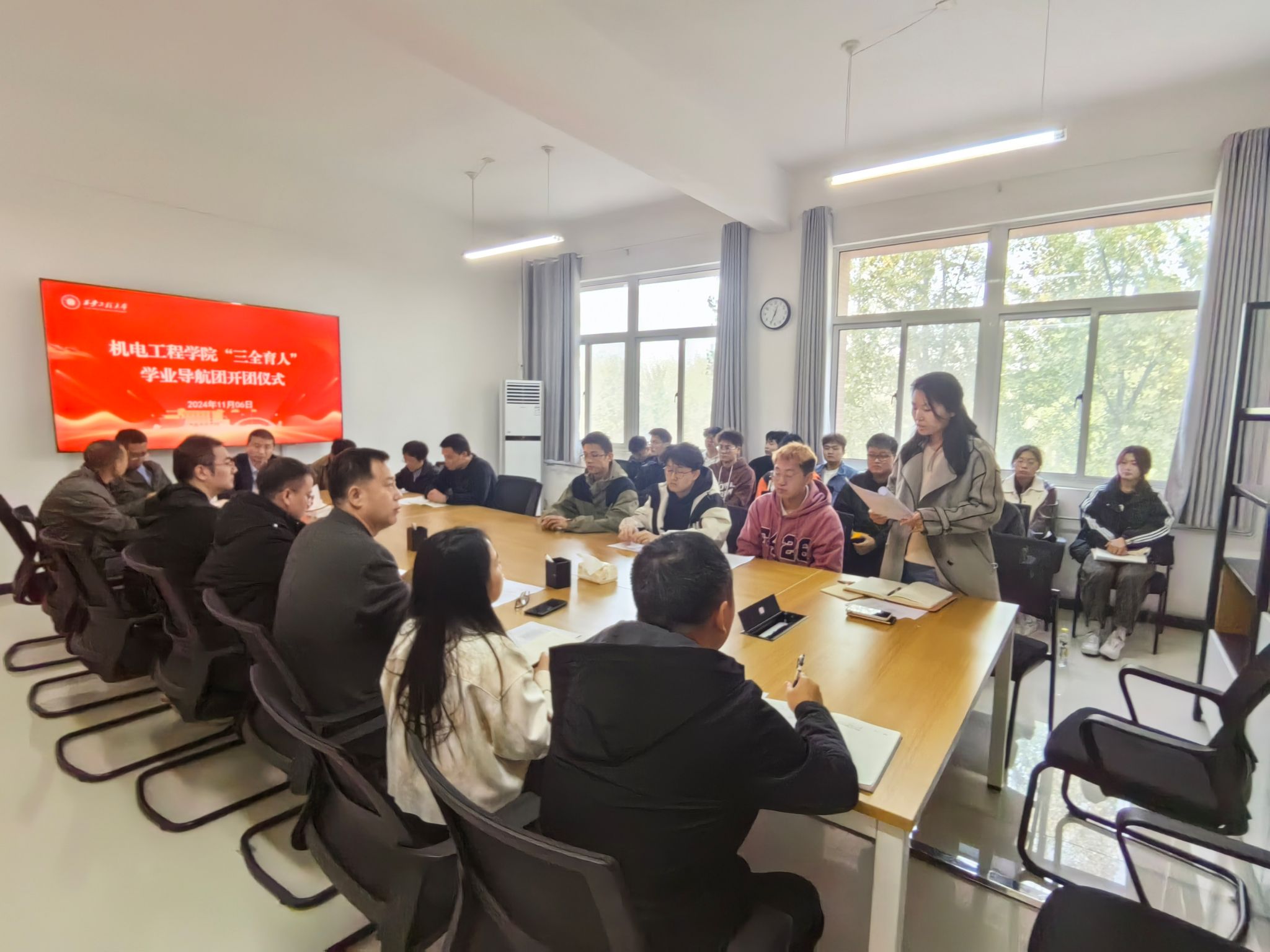 聚焦功能,覆盖全员。以学院“三全育人”启航导师团为总体构架,按照育人功能和具体职责,设置6个功能型导师团(即:思想领航团、学业导航团、心理护航团、就业引航团、科创试航团、体美劳助航团)和1个班级导师团。近日,各功能型导师团分别召开导师见面会,进一步达成共识、明确职责、部署工作。11月20日,学院党委召开班级导师团导师会议,邀请学工部部长王志进行授课交流,详细介绍学校“三全育人”工作进展情况、主要成效、存在问题,指出要进一步整合育人资源、拓宽育人渠道、形成育人合力,要打破物理空间的距离,实现“一站式”服务高效赋能,让导师获得正确引领的价值,让学生学有所思学有所获。