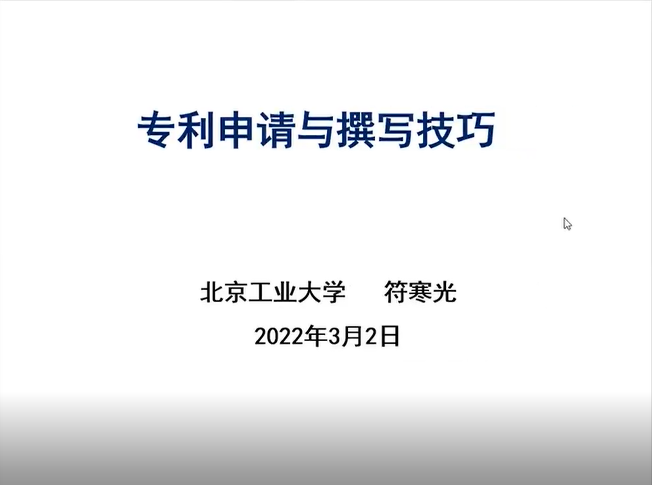 2022年3月2日下午,“陕西省百人计划”特聘教授、北京工业大学符寒光老师受jdb电子中国官方网站邀请,作了题为“专利申请与撰写技巧”的学术报告。报告采用腾讯会议形式进行,jdb电子中国官方网站和材料工程学院的近70名师生聆听了本次讲座。