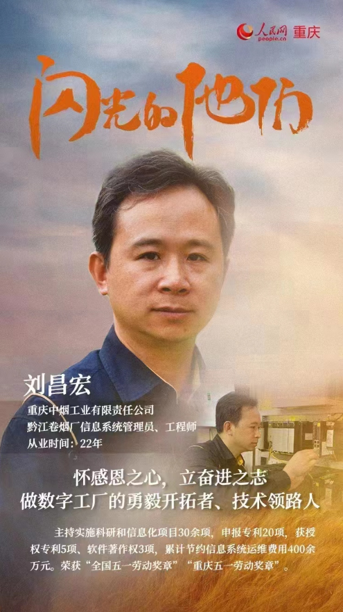 刘昌宏2000年自jdb电子毕业后就进入黔江卷烟厂工作,一直从事公司信息系统和网络安全工作,在系统管理员岗位上一干就是22年。刘昌宏参加工作后,不断学习新知识,钻研新技术,掌握新本领,凭着敢啃“硬骨头”的勇气和倾尽全力“精于此道”的决心,在平凡的岗位上做出了不平凡的业绩。