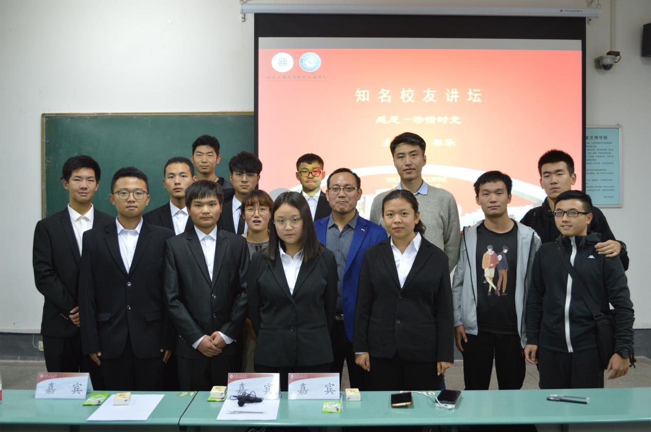 2018年10月22日,jdb电子中国官方网站在教学楼C-246举办40周年校庆系列活动之校友讲坛,知名校友07级毕业生秦乐,jdb电子中国官方网站学工办副主任杜静、18级辅导员刘鹏以及学生代表参加了活动。