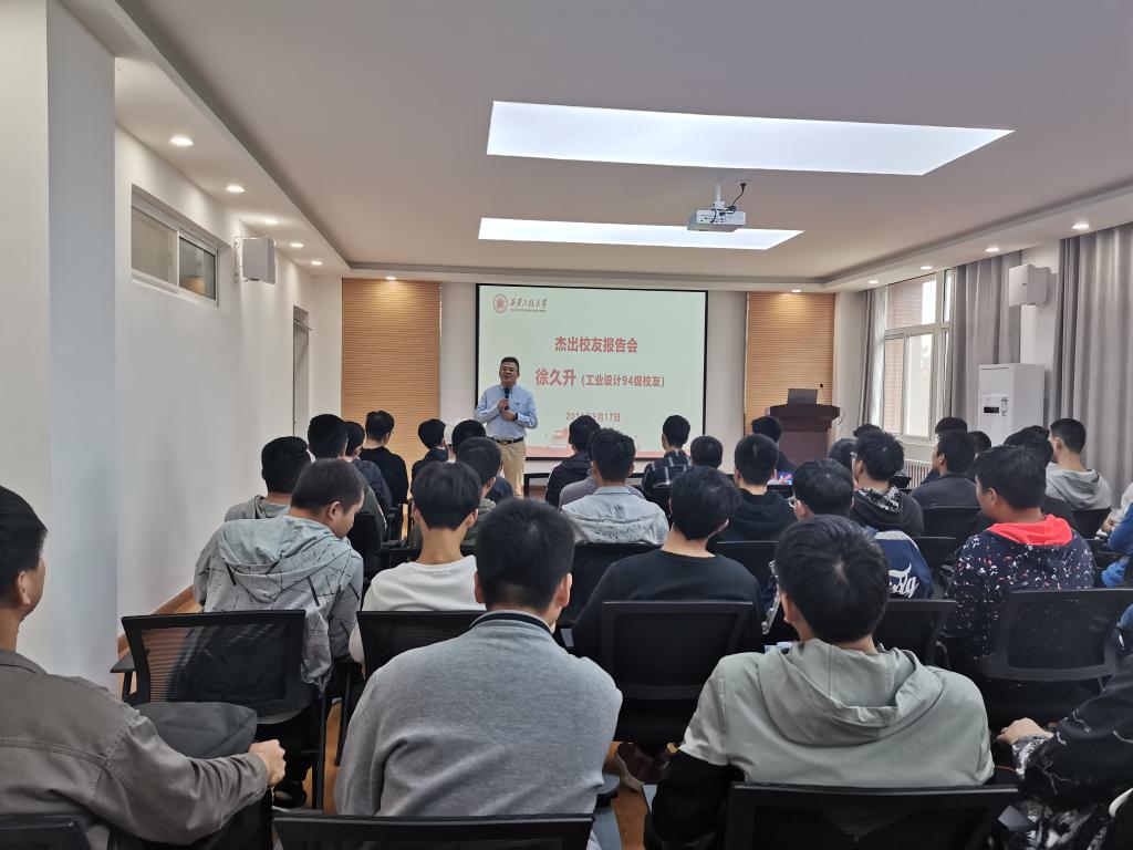 9月17日,由国内合作与校友工作处邀请,jdb电子工业设计94级校友、价值魔方咨询(深圳)有限公司总经理徐久升回到母校,为机电学院学生做了一场题为“励志生涯 逐梦人生”的报告会。报告会由机电学院党委副书记冯涛主持。